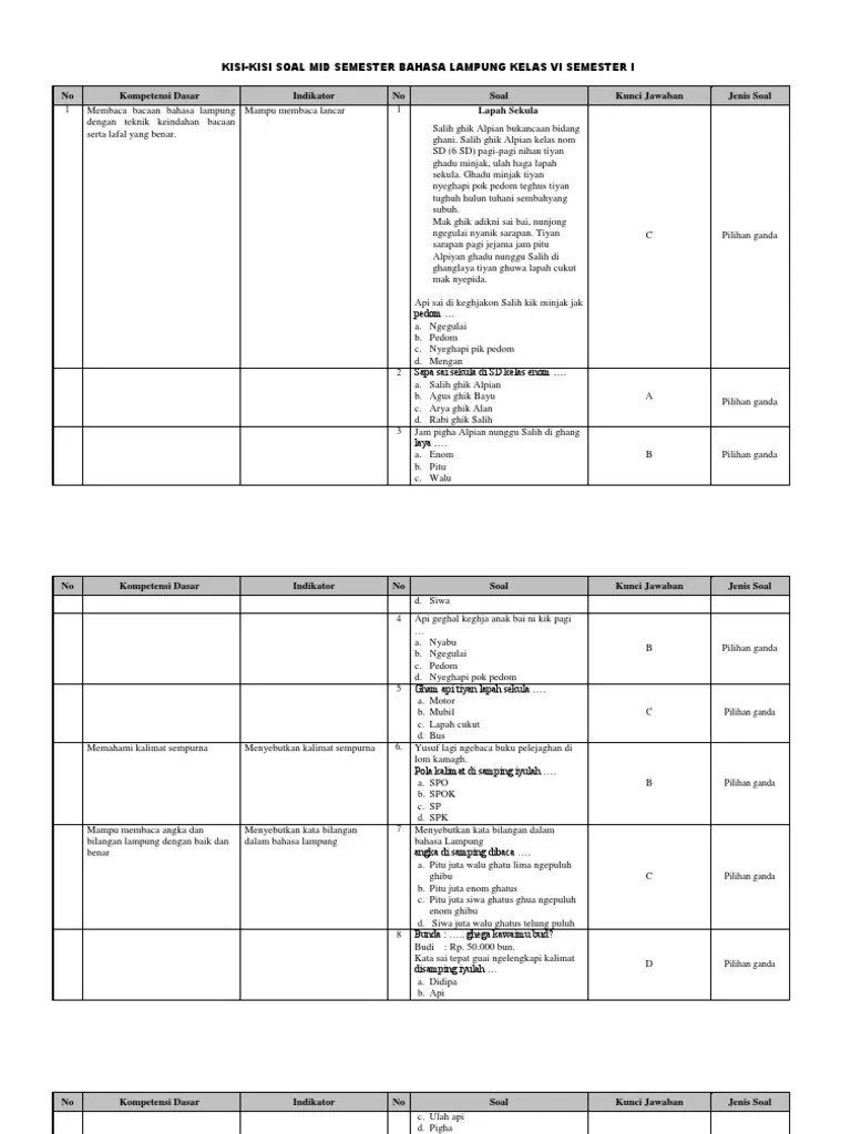 Berikut ini beberapa link download kumpulan soal pas atau uas smp mts kelas 8 semester 1 kurikulum 2013 dan ktsp yang mudah. Artinya pelaksanaan pts (penilaian tengah semester 2) uts (ulangan tengah semester genap) atau mid semester 2 (genap) akan dijalani siswa siswa sd / mi, smp / mts, sma / ma, dan smk. Demikianlah soal pat / ukk bahasa lampung kelas 8/viii jenjang smp/mts semester genap kurikulum 2013 yang dapat kami bagikan, semoga bermanfaat untuk kita semua. Soal semester genap bahasa indonesia smp kelas 8 diposkan oleh nangza a. Saat jokowi diminta kampanye gunakan bahasa lampung. Soal uas pkn kelas 7 smp semester 1 soal dan kunci jawaban pat seni budaya smp kelas 7 kurikulum 2013 download soal uts genap bahasa jawa kelas 5 semester 2 rief awa blog. Soal bahasa lampung kelas 8 semester 1 dan kunci jawaban. Contoh proposal permohonan jaringan 3g telkomsel. Contoh soal ulangan semester genap bahasa lampung kelas 4 sd pelajaran : Bacalah teks berita berikut peran ri di hargai deputi menteri luar negeri suriah dr. Soal bahasa indonesia kelas 8 semester 2 (genap) berilah tanda silang (x) pada huruf a, b, c, atau d di depan jawaban yang benar! Apr 14, 2020 · bank soal bahasa lampung kelas 4 (empat) sd penilaian tengah semester (pts) genap. Soal uts uas bahasa lampung kelas 5 semester 1 baru partles com.