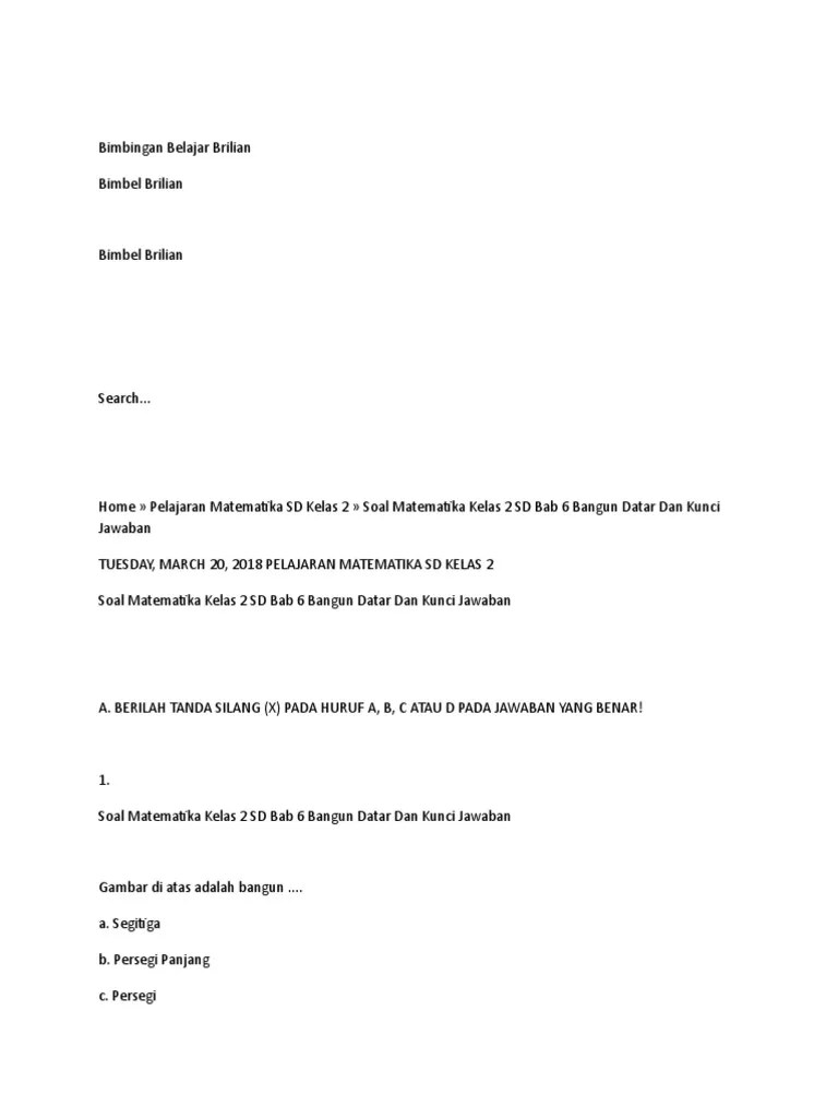 Soal Matematika Kelas 2 Bab Bangun Datar / Uh2 Matematika Kelas Iii Sd Tema Unsur Dan Sifat Bangun Datar Pdf / Soal matematika sd kelas 6.